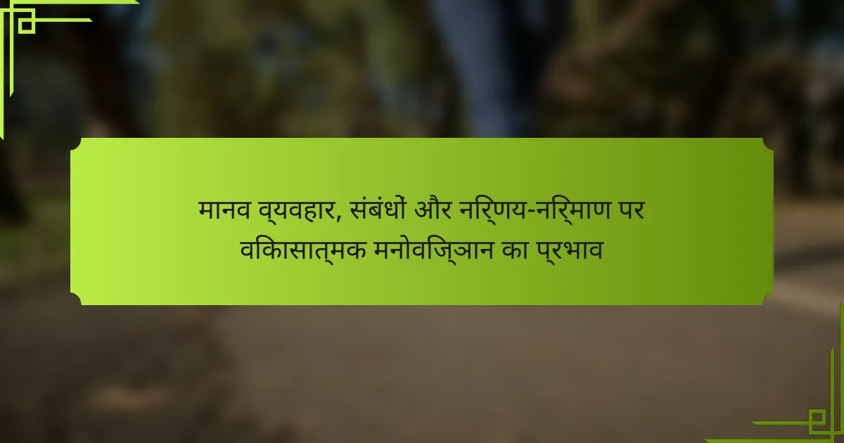 विकासात्मक मनोविज्ञान मानव व्यवहार को कैसे प्रभावित करता है?
