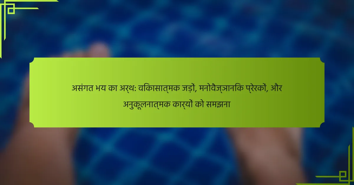 असंगत भय मानसिक स्वास्थ्य और दैनिक कार्यक्षमता पर महत्वपूर्ण प्रभाव डाल सकता है। यह लेख इसके विकासात्मक मूल, मनोवैज्ञानिक ट्रिगर्स और अनुकूलनात्मक कार्यों का अन्वेषण करता है। यह जांचता है कि ये भय कैसे प्रकट होते हैं और उनके भावनात्मक प्रभाव क्या होते हैं। इसके अतिरिक्त, यह असंगत भय को प्रभावी ढंग से प्रबंधित करने और उसे पार करने के लिए रणनीतियों पर चर्चा करता है।