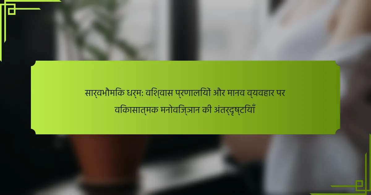 सार्वभौमिक धर्म मानव व्यवहार और सामाजिक गतिशीलता को आकार देने में एक महत्वपूर्ण भूमिका निभाते हैं। यह लेख उनके मुख्य गुणों का अन्वेषण करता है, जिसमें समावेशिता और अनुकूलनशीलता शामिल हैं, और यह जांचता है कि विकासात्मक मनोविज्ञान उनके प्रसार को कैसे सूचित करता है। यह altruism, सामुदायिक भागीदारी और नैतिक ढांचों पर इन धर्मों के प्रभाव में भी गहराई से जाता है। अंत में, चर्चा मनोविज्ञान और धर्मशास्त्र के बीच अंतःविषय सहयोग के महत्व को उजागर करती है ताकि इन विश्वास प्रणालियों की हमारी समझ को बढ़ाया जा सके।